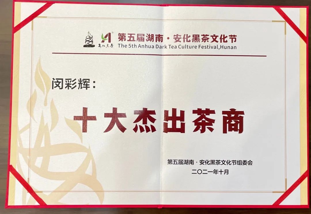 ——云天阁茶业经销商喜获“安化黑茶‘百佳十杰’经荣誉称号