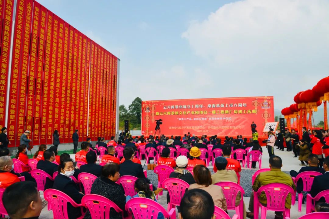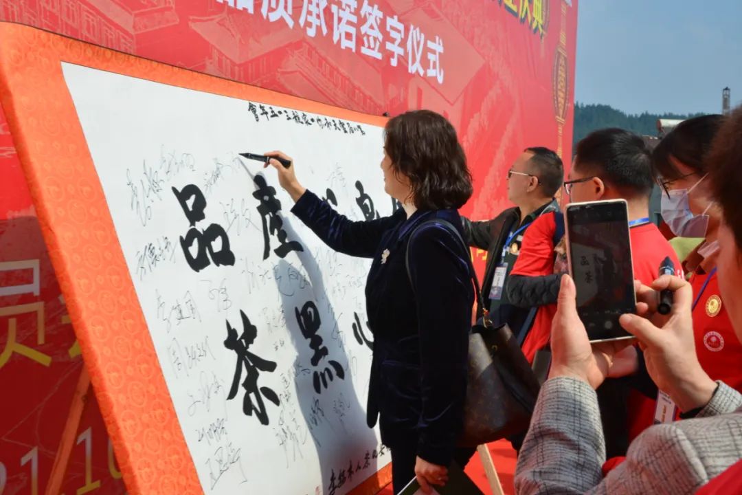 云天阁茶业为立足企业新发展阶段,贯彻新发展理念,构建新发展格局,不断提高我司品牌黑茶的总体质量水平,大力推进质量强企建设战略。2021年10月23日,在云天阁茶业成立十周年、桑香黑茶上市六周年暨云天阁茶旅文化产业园项目一期工程新厂房竣工庆典上,云天阁茶业全体人员隆重地举行了品质承诺仪式。