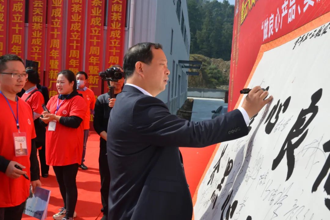 出席本次盛典的领导、嘉宾分别为省、市、县各级党政领导以及国内知名茶学专家、云天阁战略合作伙伴、茶界名士、新闻媒体、资深茶人等单位与个人,总人数近500余人。在他们的共同见证下云天阁全体成员庄严承诺、誓言铮铮:“做良心产品,卖放心黑茶。”质量是企业生存与发展的根本,事关一个企业的兴盛发达。品牌是企业无形的资源,直接关涉企业对市场的占有率。两者直接影响着企业的发展与壮大。自2011年创业伊始,发展至2021年,云天阁茶业已历经了十年春华秋实。云天阁茶业在创始人李云先生的带领下,全体云天人一直秉持“严要求、创新品、保质量”的发展理念,坚持“步步为营、稳打稳扎、稳中求进、奋力创新”的发展路子,在业内外界依靠过硬的品质和良好的企业形象,赢得了国内外广大茶友的高度认可与由衷喜爱。