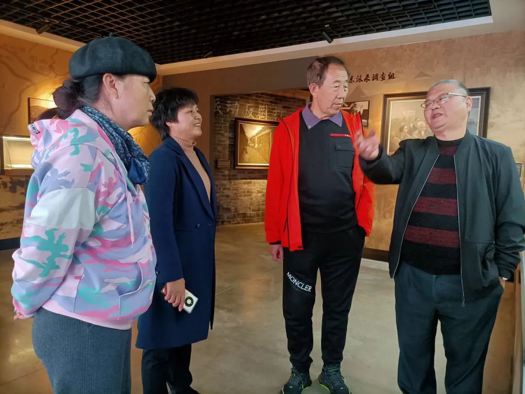 期间张青娥董事长带领姜会长一行参观红色文化馆,并激情澎湃的向大家介绍《毛泽东与安化》的展览。