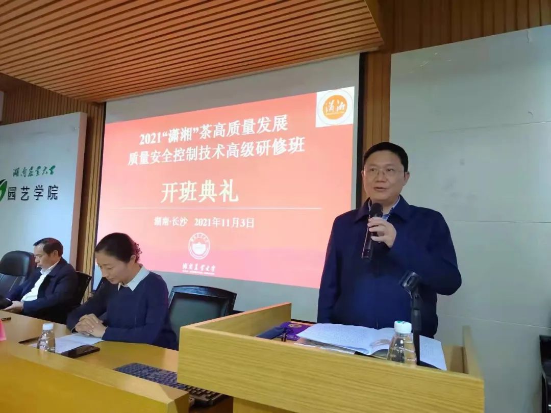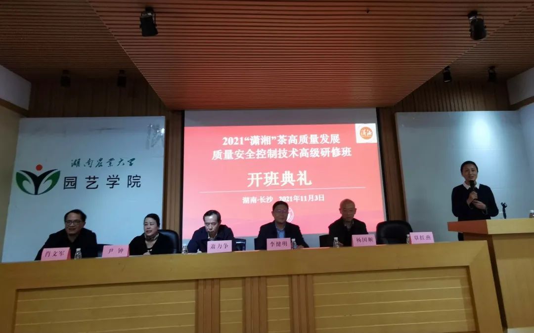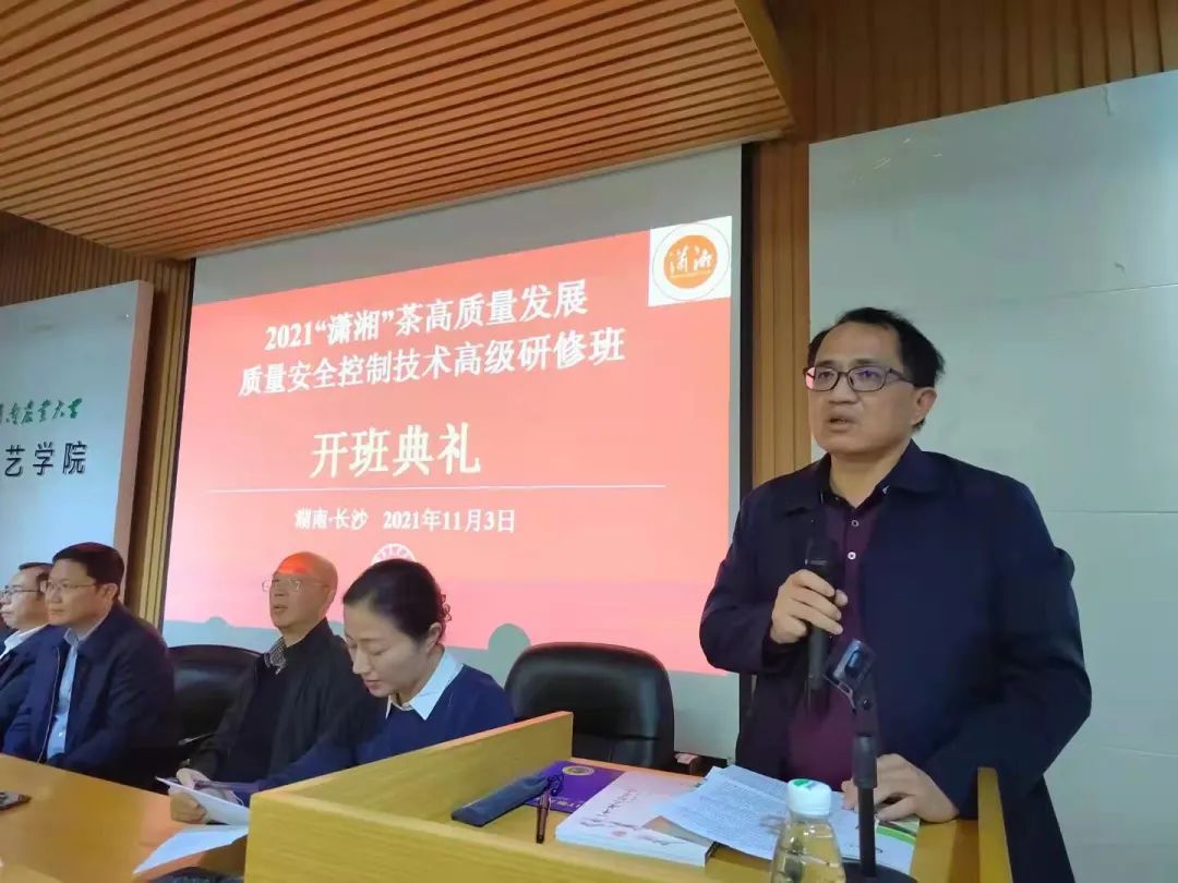 11月3日—5日,由湖南省大湘西茶产业发展促进会主办的2021年“潇湘”茶高质量发展质量安全控制技术培训在湖南农业大学成功举办。湖南省发改委湘西地区开发和对口支援处二级调研员李健明、湖南农业大学园艺学院院长杨国顺、湖南省茶叶学会理事长、湖南农业大学教授萧力争,湖南农业大学茶学系主任、教授肖文军,湖南省大湘西茶产业发展促进会副会长兼秘书长尹钟等农大教授、博士出席了开班典礼。开班典礼由湖南农大园艺学院党委书记覃红燕主持,通过院长杨国顺的介绍也了解到湖南农大茶学是茶学专业技术人才培养的专业机构,拥有以教学育人楷模、中国工程院院士刘仲华为领衔人的学科专业优势,尤其在茶叶高质量生产与安全控制、茶叶质量评鉴和控制、茶叶功能成分利用等方面,不仅引领了全国茶学学科发展前沿,而且形成了核心竞争力与特色品牌;茶学系系主任肖文军教授向大家简述了开办“潇湘”茶高质量发展质量安全控制技术培训的意义。