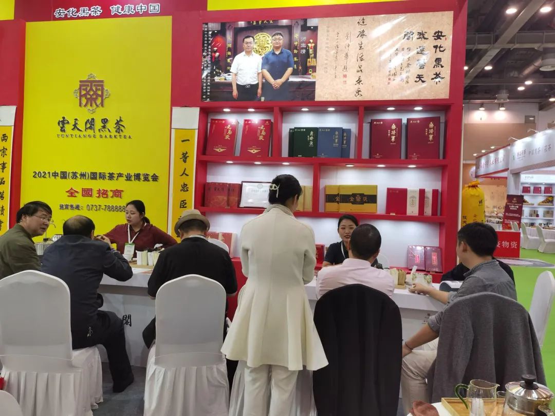 11月6日,安化县商务局党组书记伍哲纯、安化经促会华东分会秘书长刘胜利等莅临苏州茶博会慰问安化黑茶茶企。