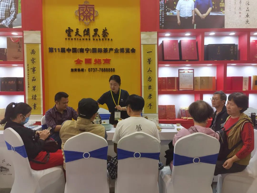 在本届茶博会上,云天阁茶业充分结合了广西饮茶习性特点,精心整合茶叶资源,努力搭建茶产业信息传播、产品展示和贸易交流一站式体验平台,着力推介安化黑茶产区优势,突出安化黑茶区域公共品牌。云天茶业务求在每次全国茶博会中,积极凭借“十四五”开局起步、巩固拓展脱贫攻坚成果和乡村振兴有效衔接的东风里,奋力提升安化黑茶品牌的影响力和竞争力,为助推安化黑茶产业高质量可持续有效发展积极贡献力量。