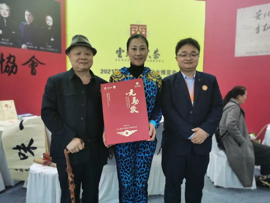 当然,今天的黑茶展区还出现了神秘嘉宾,莅临云天阁展位的神秘嘉宾有:世界冠军黄穗女士,并为桑香安化黑茶元勋茯签字留念。除了世界冠军,还有湖南省蚕桑科学研究所副所长、研究员颜新培先生,省茶业协会副秘书长黄德开先生,湖南日报全媒体学院院长、当代商报社副总经理吴明德先生等领导嘉宾莅临云天阁展位。