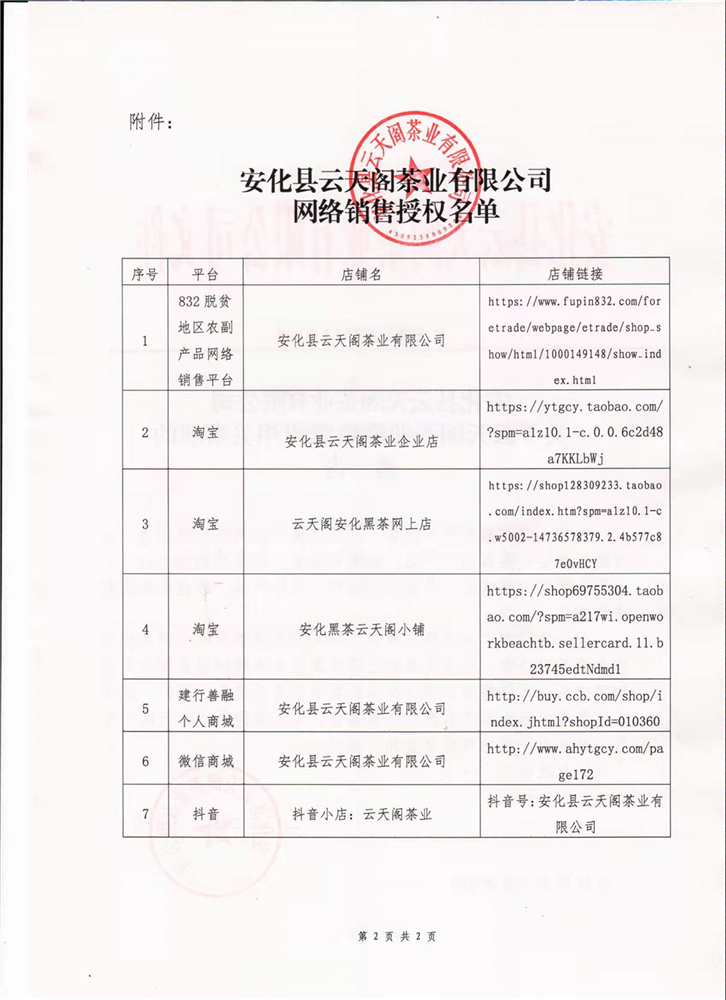 2 | 淘宝 | 安化县云天阁茶业企业店 | https://ytgcy.taobao.com/?spm=a1z10.1-c.0.0.6c2d48a7KKLbWj |