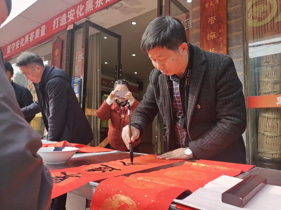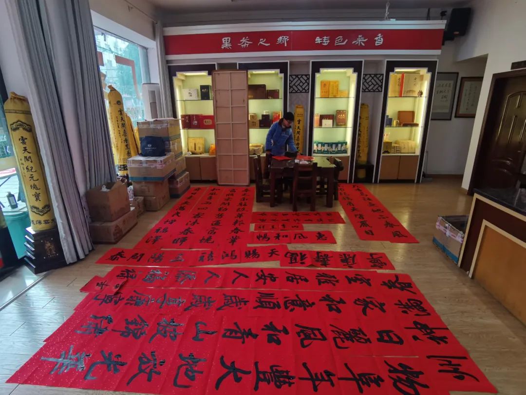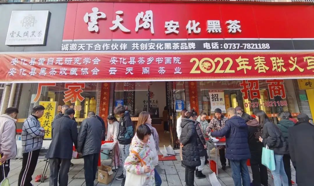2022年1月18日,由安化县黄自元研究学会、安化县茶乡书画院、安化黑茶收藏协会、安化县云天阁茶业有限公司共同举办的2021年春联义写活动在云天阁安化营销中心举行。