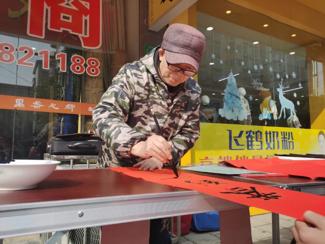 天气虽冷,书法爱好者们却热情高涨,挥毫泼墨,写出饱含喜庆和祝福的春联,为群众送上充满年味的文化礼物。大家各个喜笑颜开、连连称赞,现场涌动着浓浓的暖意。