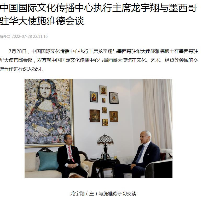 2022年7月28日,安化黑茶元勋茯作为跨国交流高档茶礼,被中国国际文化传播中心执行主席龙宇翔赠送给墨西哥驻华大使施雅德。(来源:人民日报海外网)