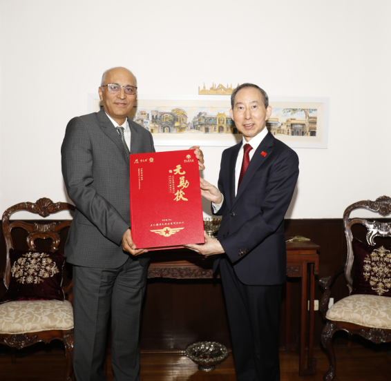 巴基斯坦驻华大使官邸会见并赠送安化黑茶元勋茯。