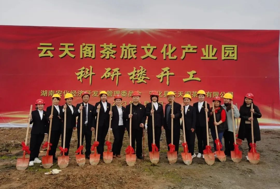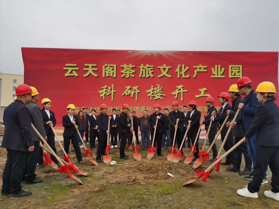3月8日,我司云天阁茶旅文化产业园科研楼项目开工仪式在安化黑茶产业园举行。湖南安化经开区党工委书记周华山宣布开工,经开区党工委副书记刘佳、管委会副主任夏理林及各部门负责人出席开工仪式。
