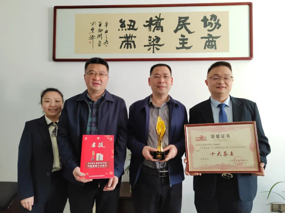胡能华(右二) 廖小寒(左二) 李劲峰(右一) 李苗苗(左一) 李劲峰详细地向胡能华主席介绍了我司茶中新贵“桑香茯茶”在中国首届“十大茶王”评审过程中面临严苛的评审条件和严谨的评审环节中如何脱颖而出斩获殊荣的精彩历程。并表示将一如既往地充分发挥自己作为政协常委的示范带头作用,时刻牢记使命,永远不忘初心,履职尽责,积极作为,建言献策,认真思考与谱写安化黑茶高质量发展的提案。